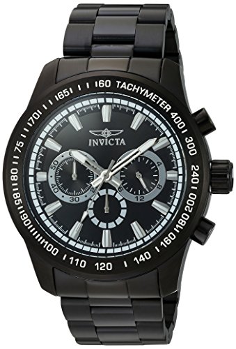 The Speedway collection by Invicta is stylish, sleek, and versatile. Its comfortable black ion plated stainless steel bracelet, soothing black dial, precise chronograph complication and spectacular 100 meter water resistance capability make this particular timepiece a must-have for any man’s collection. Complete yours today.